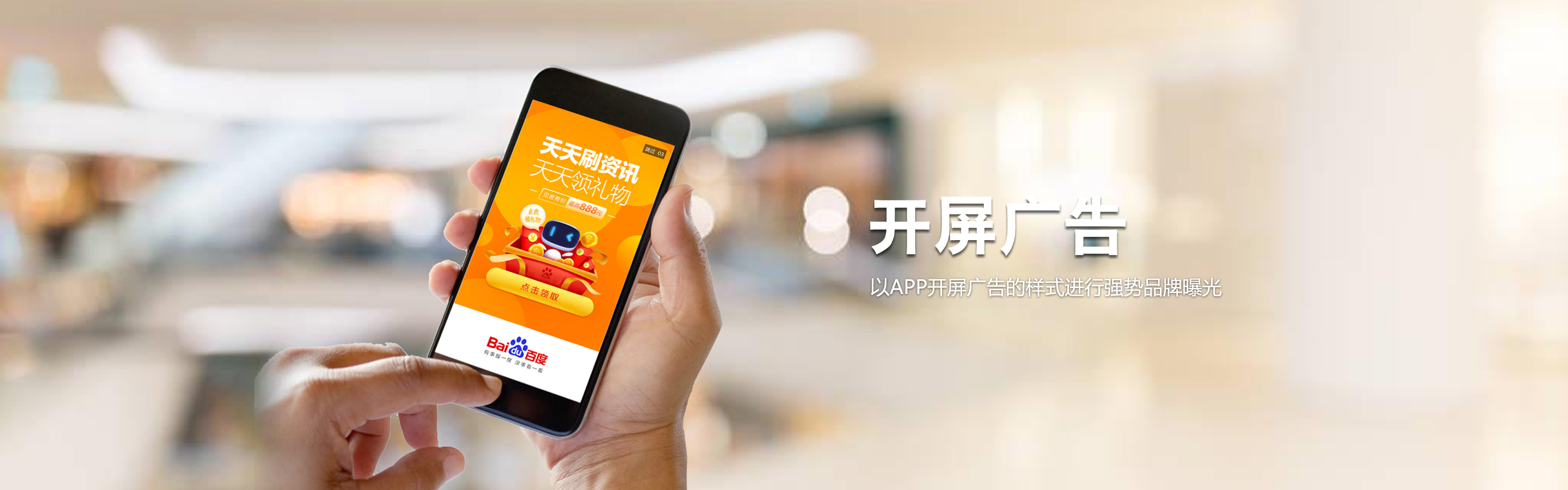 百度開屏整合百度優(yōu)質(zhì)品牌廣告流量 以APP開屏廣告的樣式進(jìn)行強(qiáng)勢(shì)品牌曝光