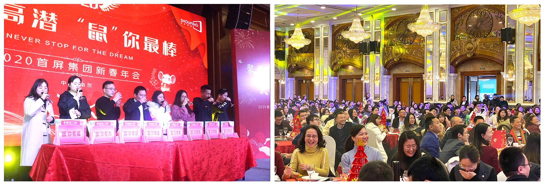 2020年1月19日,“聚焦高潛 鼠你最棒”——2020首屏集團(tuán)新春年會在維景國際大酒店圓滿落幕!首屏集團(tuán)南京、南通地區(qū)的近700名同學(xué)相聚一堂,共話團(tuán)圓、喜迎新春。熱鬧喜慶的會場,精彩紛呈的表演、歡樂趣味的游戲、動人心魄的抽獎...讓年會格外熱鬧、驚艷?,F(xiàn)場的每個角落都充斥著新春的喜悅,每個人臉上都洋溢著快樂的笑容,每個瞬間都成為大家心中美好的回憶。