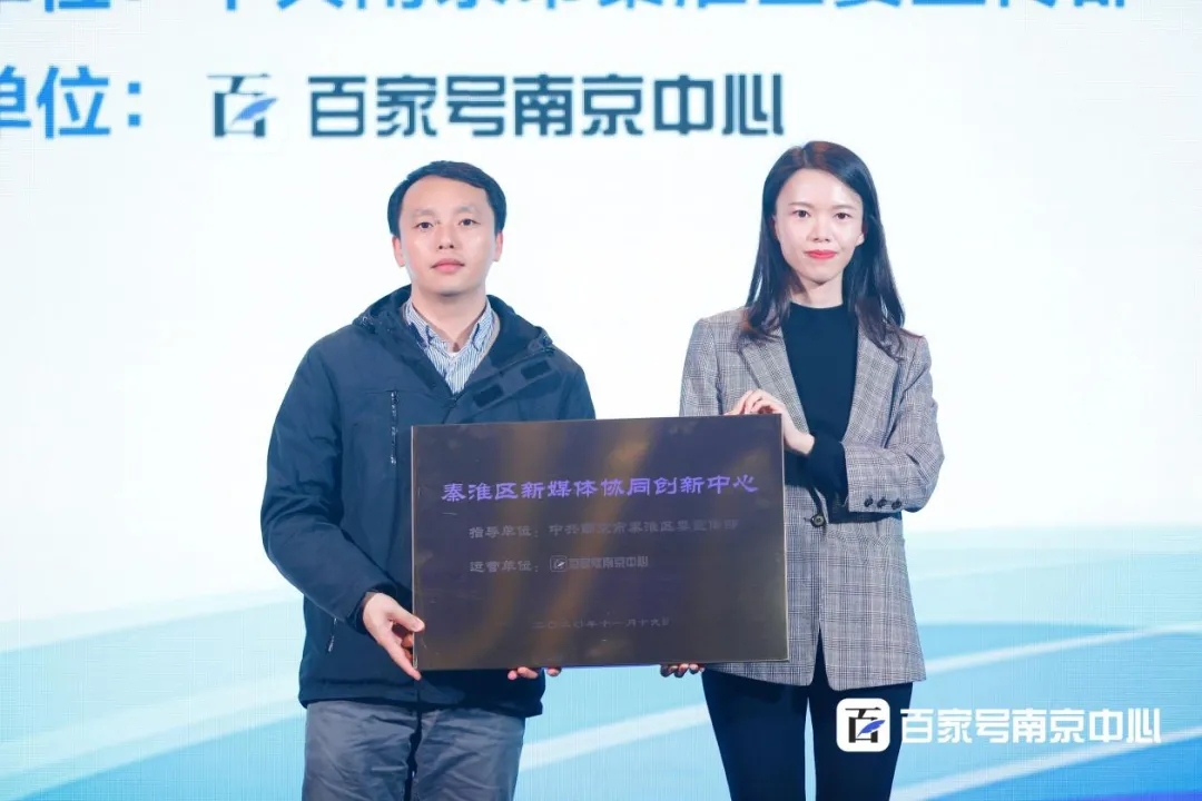 授牌儀式上,秦淮區(qū)委網(wǎng)信辦專職副主任祝鯤鵬向百家號南京中心授予“秦淮區(qū)新媒體協(xié)同創(chuàng)新中心”稱號。秦淮區(qū)宣傳部將攜手百家號南京中心共同為南京的內(nèi)容創(chuàng)作者持續(xù)提供優(yōu)質(zhì)的平臺和資源,打造自媒體孵化基地,推動南京內(nèi)容生態(tài)的發(fā)展。