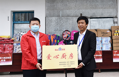 當天捐贈儀式上,首屏百度營銷(南京)服務中心副總經(jīng)理余超與馬安小學校長李康共同揭牌。本次公益行動中百度捐贈愛心善款,用于搭建百度愛心廚房,購置全新的廚房設備、保溫設備、飲水設備等;同時還為學校附屬幼兒園捐贈急缺的兒童睡床及空調(diào)等設備。目前,學校已經(jīng)使用全新的設備,讓孩子們吃上可口的飯菜、喝上干凈的飲用水,幼兒園的孩子們也睡上舒適的睡床。