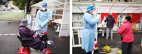 由于近期南京接連不斷的陰雨以及驟降的氣溫,給市民采集核酸帶來一些不便,面對個別市民因排隊時間久而產(chǎn)生的抱怨與不理解,他們細(xì)心講解、耐心開導(dǎo)、貼心安撫大家的情緒,確保核酸檢測工作有條不紊地進行。